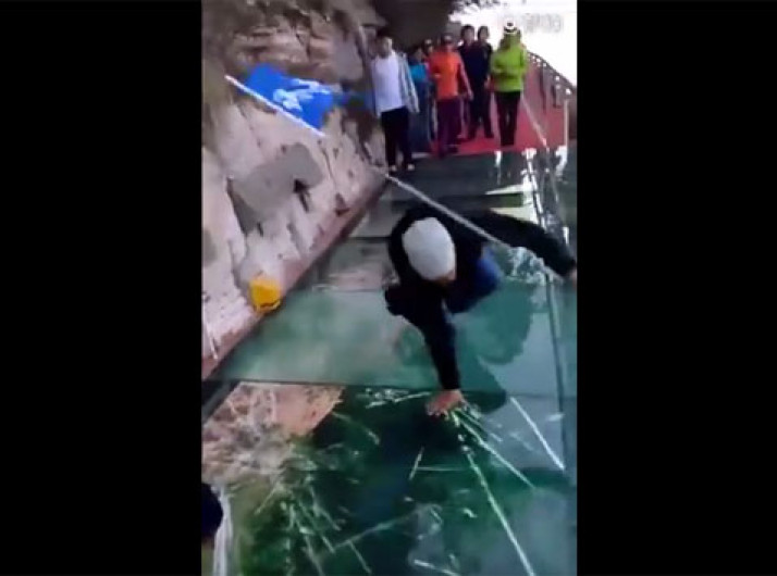 Ilusão faz vidros de ponte chinesa trincarem com pessoas em cima