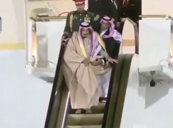 Rei saudita fica "travado" após problema em escada rolante de ouro