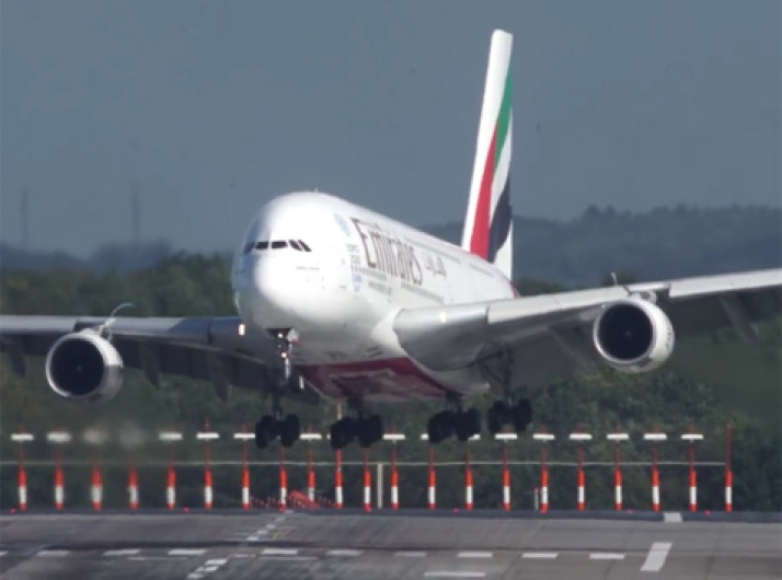 Piloto 'luta' contra vento para pousar maior avião comercial do mundo