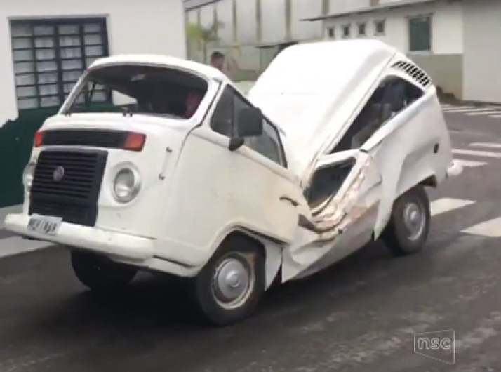 Vídeo mostra motorista dirigindo carro atingido no meio por árvore em SC
