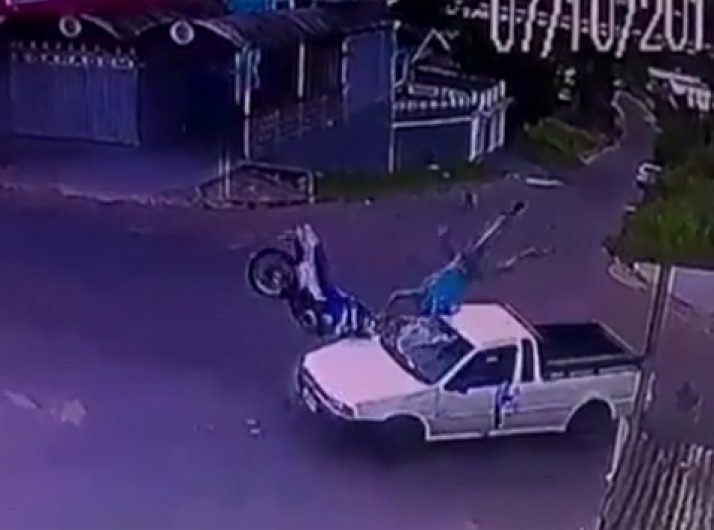 Motociclista é arremessado após se envolver em acidente no Acre