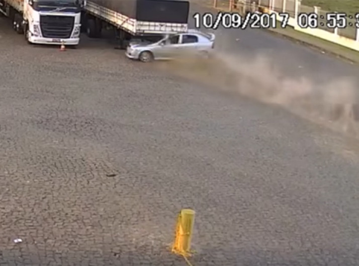 Vídeo mostra momento em que carro entra embaixo de carreta