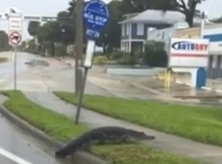 Jacaré é flagrado cruzando rua após passagem de furacão Irma na Flórida