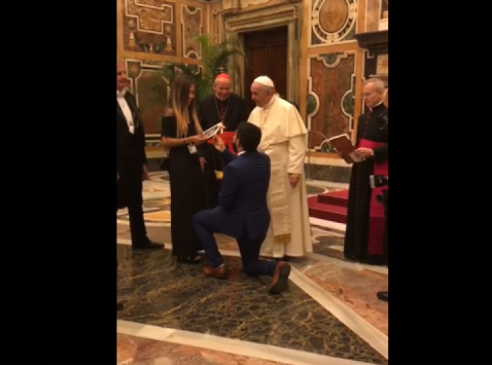 Homem pede namorada em casamento durante encontro com Papa