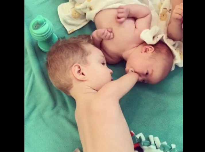 Menino sem mãos da chupeta ao irmãozinho e emociona a web