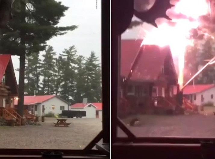 Raio impressionante destrói árvore no Canadá; veja