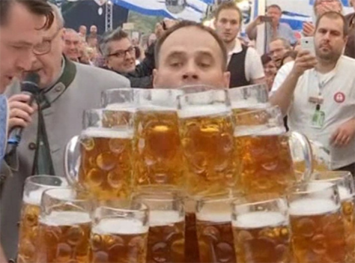 Garçom bate recorde ao levar 29 canecas de cerveja sem usar bandeja