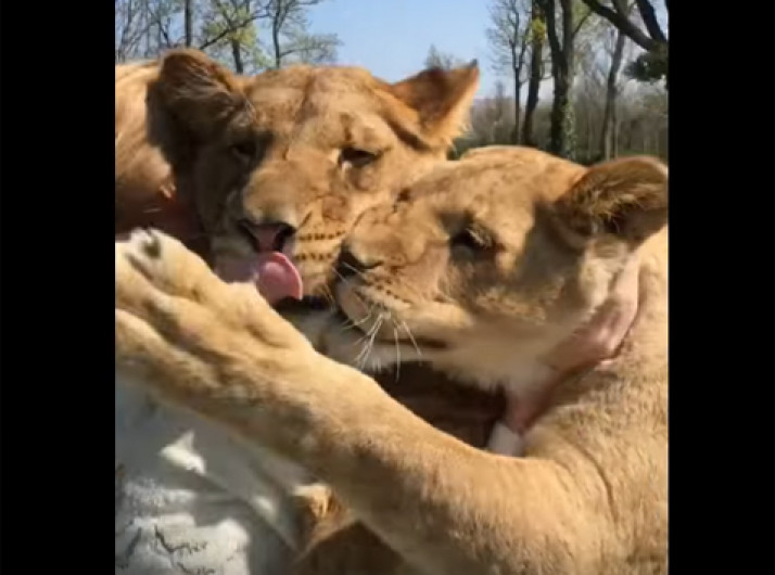 Vídeo mostra reação carinhosa de leoas ao reencontrarem antiga dona