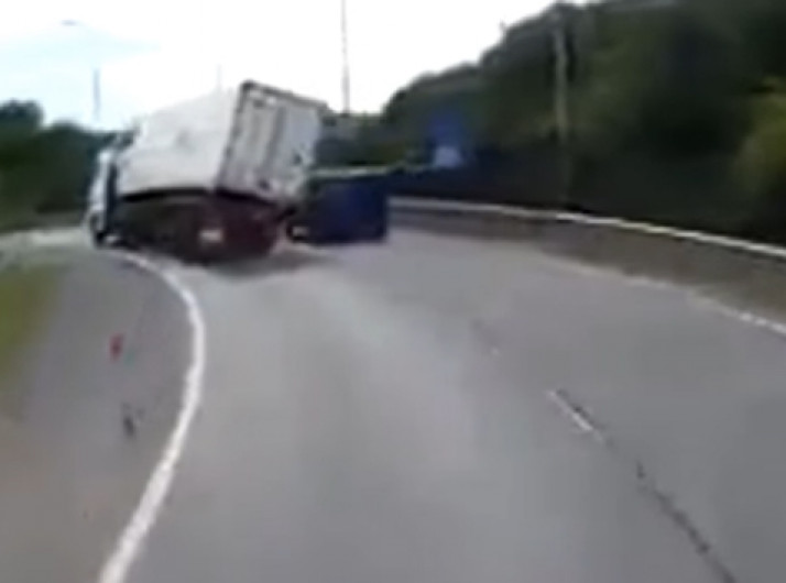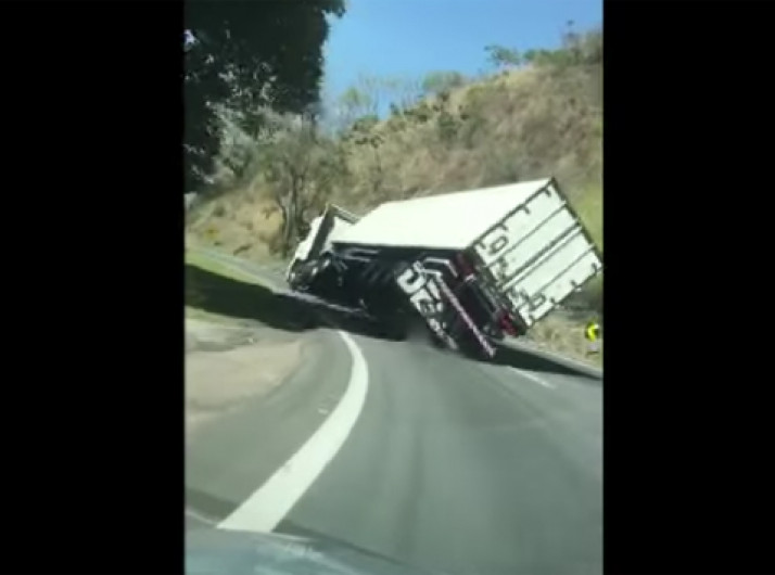 Vídeo mostra carreta tombando na descida da Serra das Araras