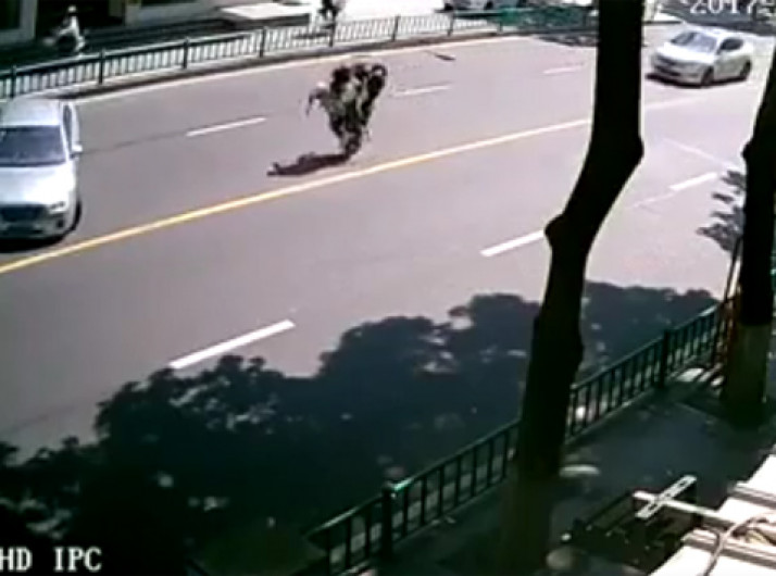 Moto se "revolta" após tombo com família e vai embora sozinha