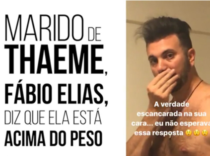 Marido de Thaeme, Fábio Elias, diz que ela está acima do peso