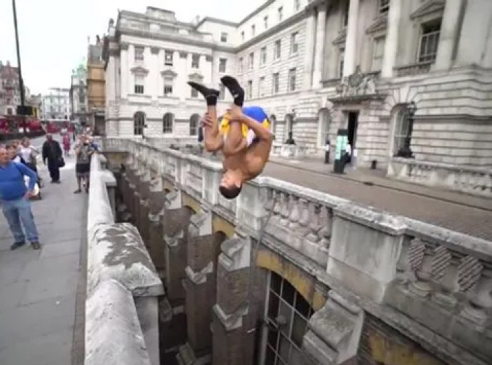 Praticante do parkour desafia seguranças e faz salto arriscadíssimo