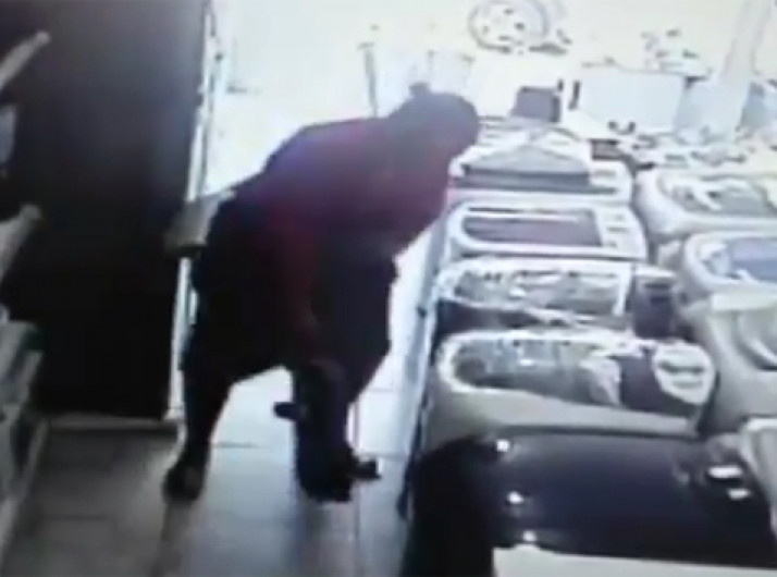 Mulher é flagrada furtando TV de loja e escondendo na saia