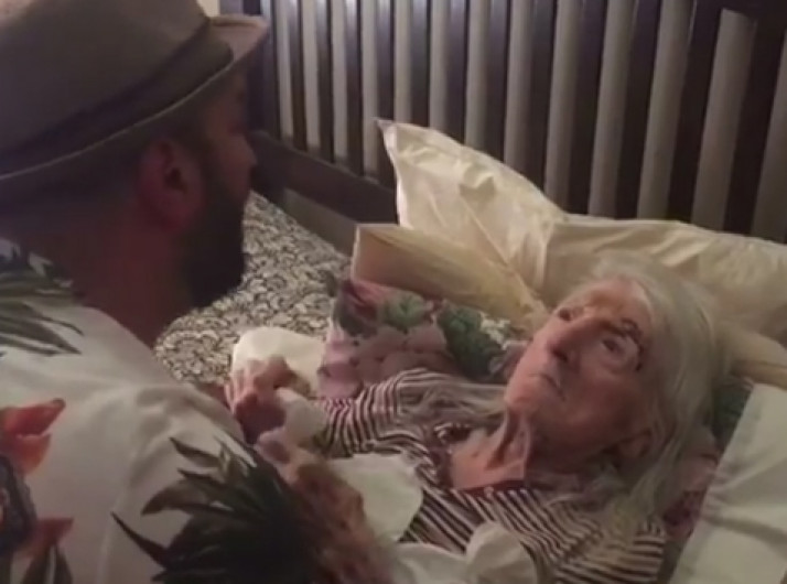 Homem emociona ao cantar para avó no aniversário de 98 anos