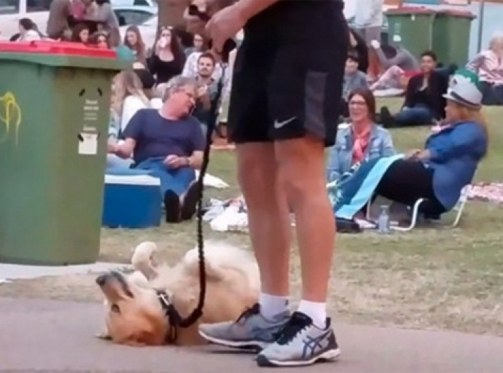 Cachorro se finge de 'morto' para não ter que ir embora de parque