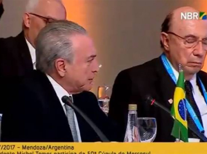 Henrique Meirelles dorme durante discurso de Temer no Mercosul