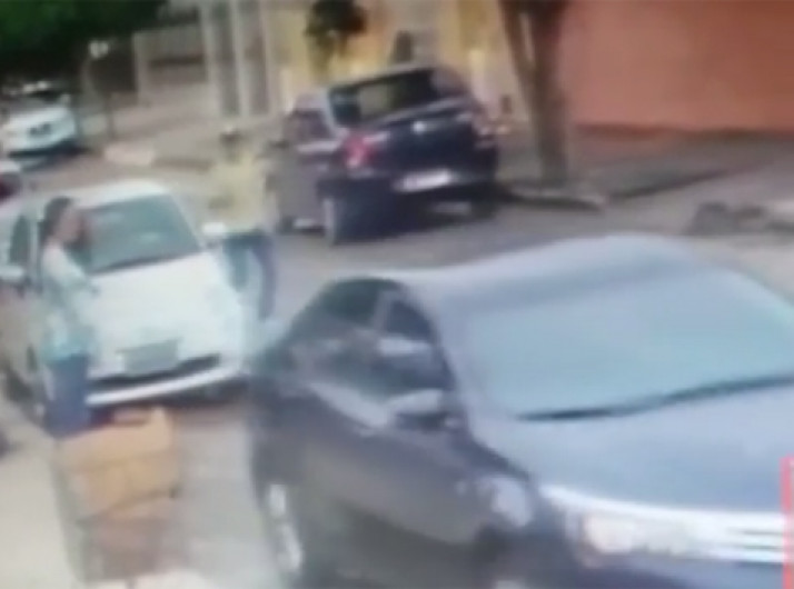 Homem percebe ação de assaltantes e larga mulher na rua