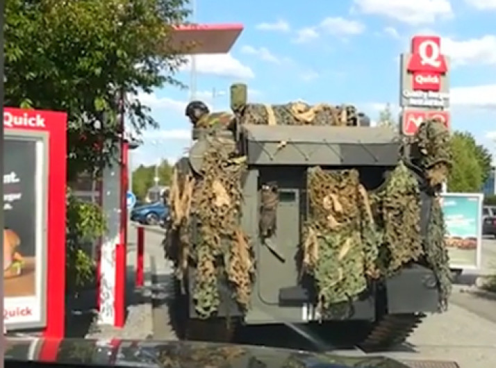 Militares usam tanque de guerra para pedir comida em drive-thru