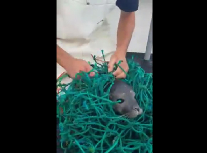Pescadores ajudam foca a se libertar de rede de pesca nos EUA