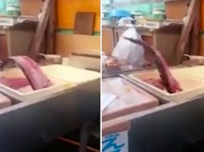 Vídeo flagra metade de um atum se mexendo em peixaria