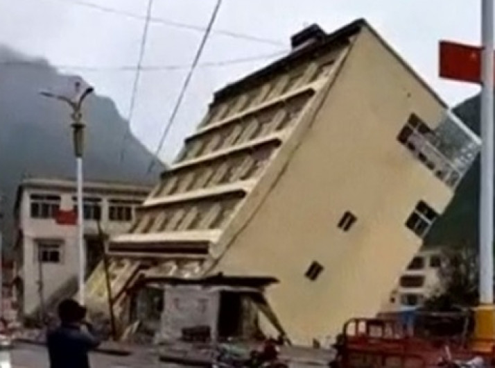 Prédio desaba e caminhão é arrastado devido ao mau tempo no Tibete