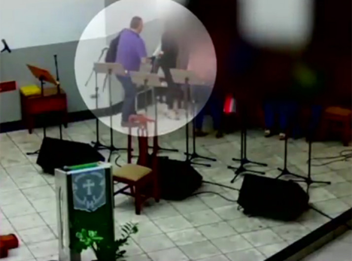 Vídeo mostra homem furtando bolsa em altar de igreja