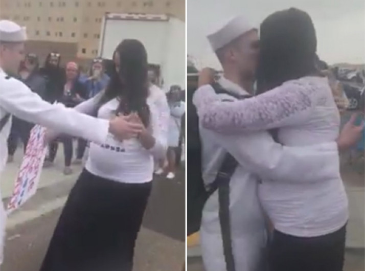 Marinheiro se emociona ao retornar de viagem e encontrar esposa grávida