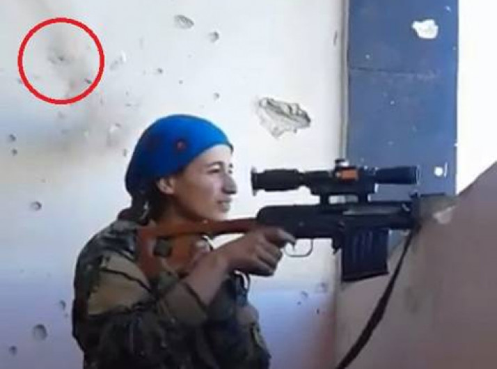 Atiradora ri após quase ser atingida na cabeça por bala do Estado Islâmico