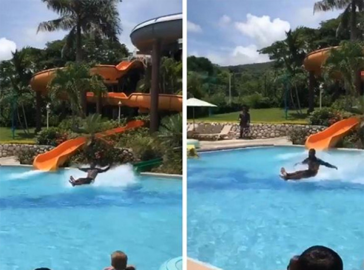 Jovem ‘flutua’ em piscina ao sair de toboágua e intriga internautas