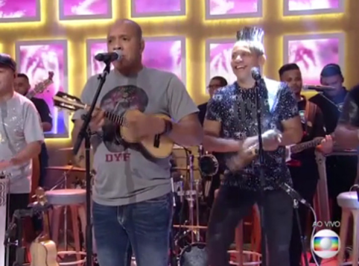 Molejo cria "novo idioma" para cantar "Despacito" no programa da Fátima