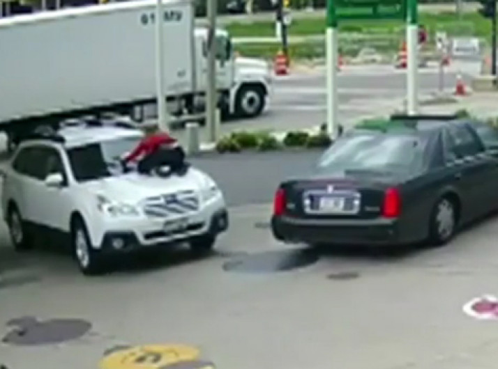 Mulher surpreende ladrão e evita roubo ao se jogar sobre carro em posto