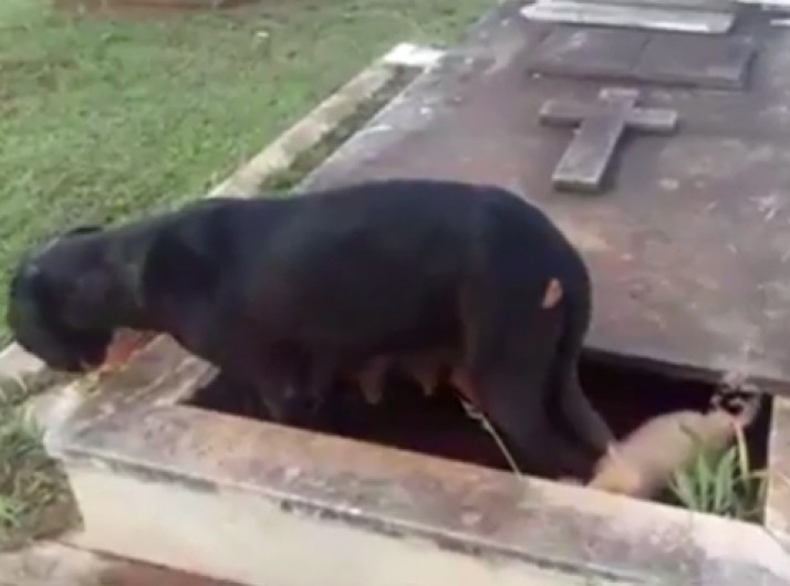 Cadela da à luz a 11 filhotes dentro de túmulo em cemitério de Brasília