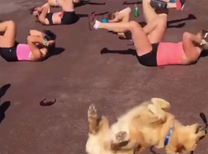 Cachorro encanta a web ao tentar fazer exercícios com grupo