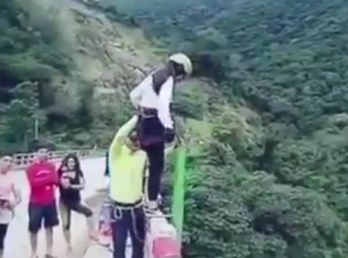 Jovem salta de bungee jump com corda muito longa e sofre acidente