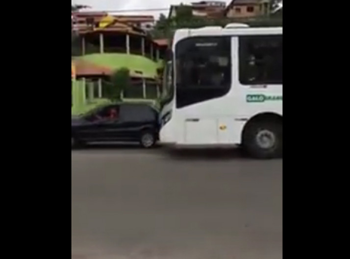 Motorista de ônibus em fúria, sai empurrando carro em São Gonçalo RJ