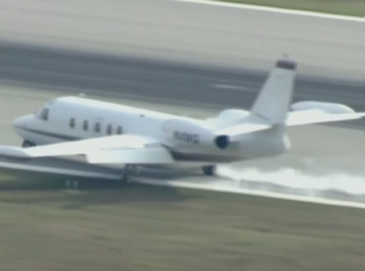 Avião faz pouso de emergência e sai na pista em aeroporto na Flórida