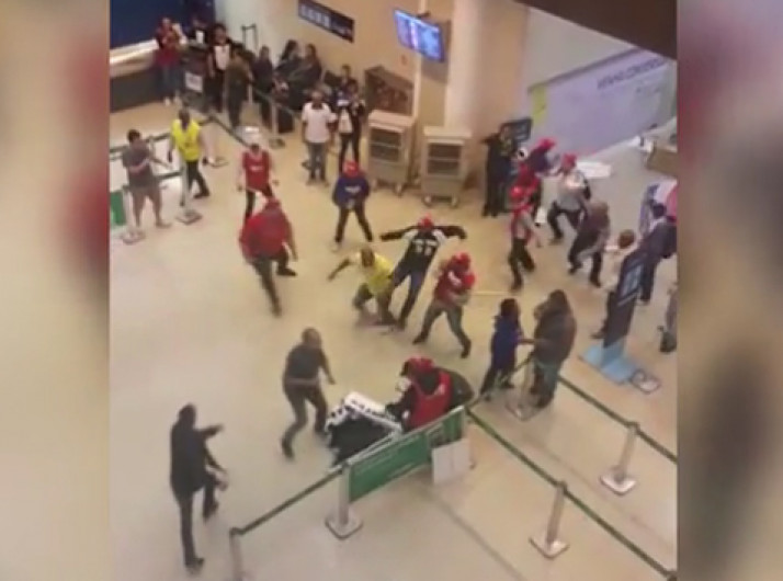 Manifestantes brigam durante protesto no aeroporto Santos Dumont