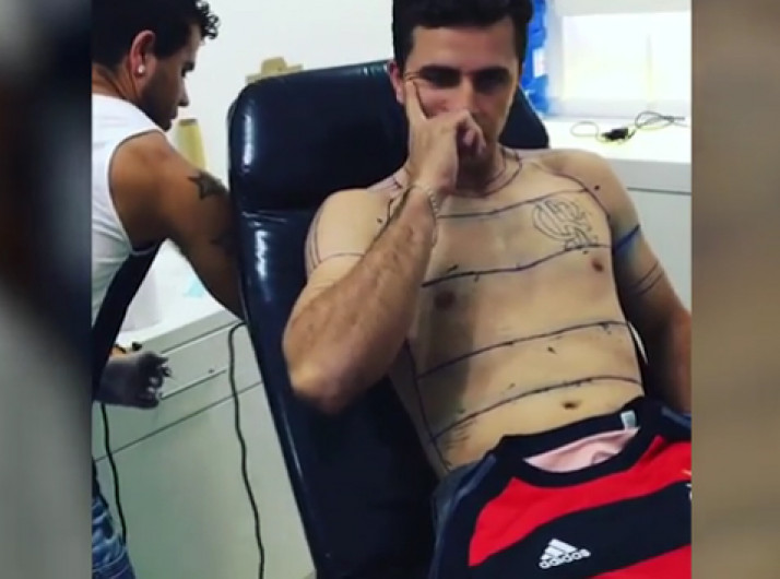 Torcedor está tatuando camiseta do Flamengo no corpo