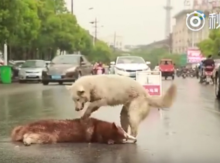 Cãozinho é atropelado em estrada e seu amigo tenta ‘reanimá-lo’