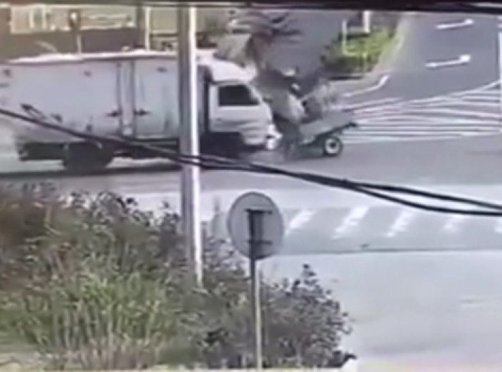 Mulher é atingida em cheio por caminhão; vítima teve ferimentos leves