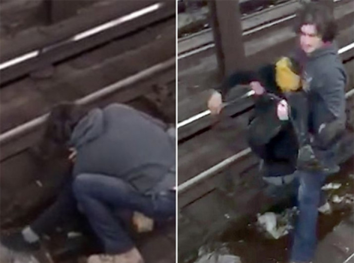 Homem salta nos trilhos e salva jovem de ser atingido por trem