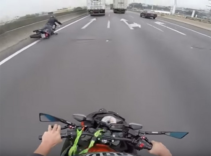 Em alta velocidade, motoqueiro se desequilibra e cai em rodovia