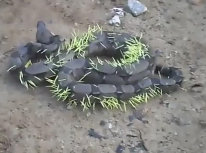 Jibóia tenta atacar porco-espinho e acaba levando a pior
