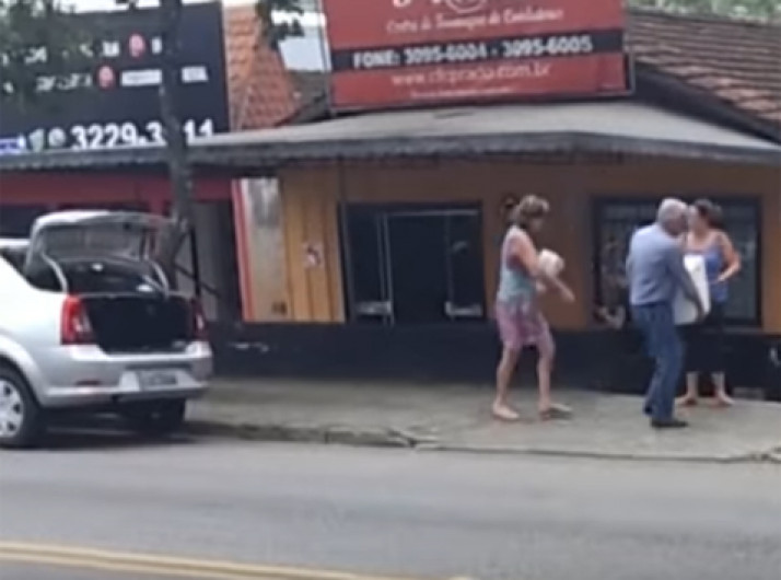 Vítima se recusa a entregar a bolsa e leva uma rasteira do assaltante