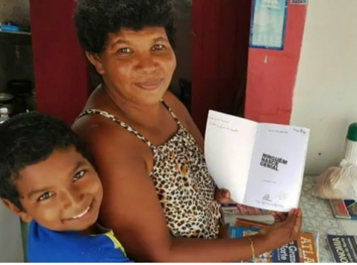 Aos 42 anos, catadora de lixo aprende a ler com filho de 11 anos
