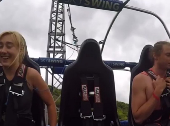 Garota cai na risada ao ver seu namorado desmaiar no Sky Swing