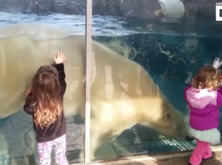 Urso Polar dá cabeçada no vidro do seu tanque no zoo e assusta visitantes