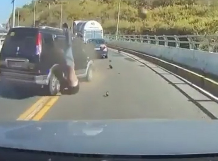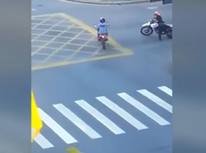 Carro faz ultrapassagem proibida e acerta motoqueiro em cheio; veja