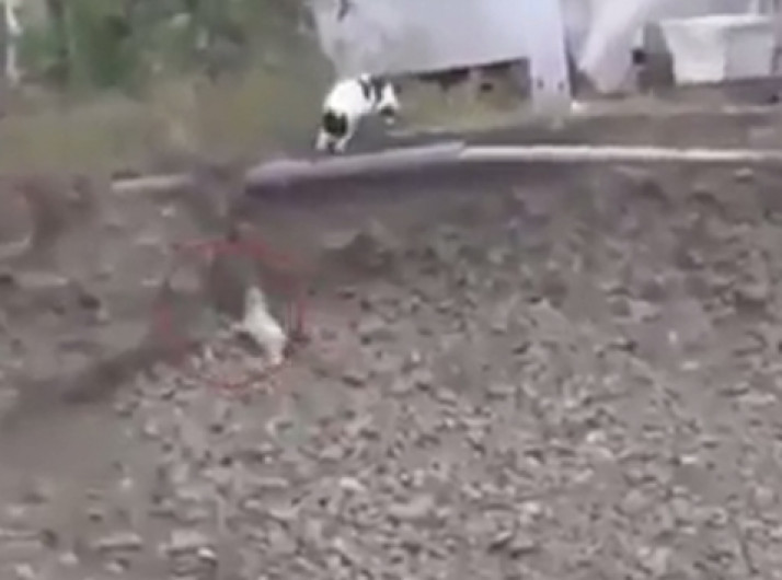 Gato resgata filhote de cachorro que havia caído em um buraco