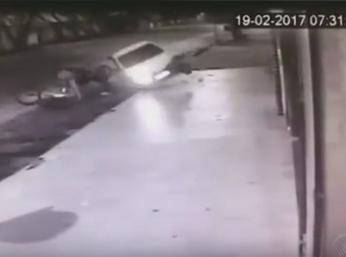 Mulher é arremessada de moto após ser atingida por caminhonete